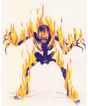 All plasms have glowing yellow eyes with a sinister glare. Plasms are able to communicate with any intelligent creature, and each type has its own distinctive voice. Earth plasms talk with a deep rumble; air plasms pracucally whistle their words; fire plasms hiss and crackle; water plasms talk in gurgles.